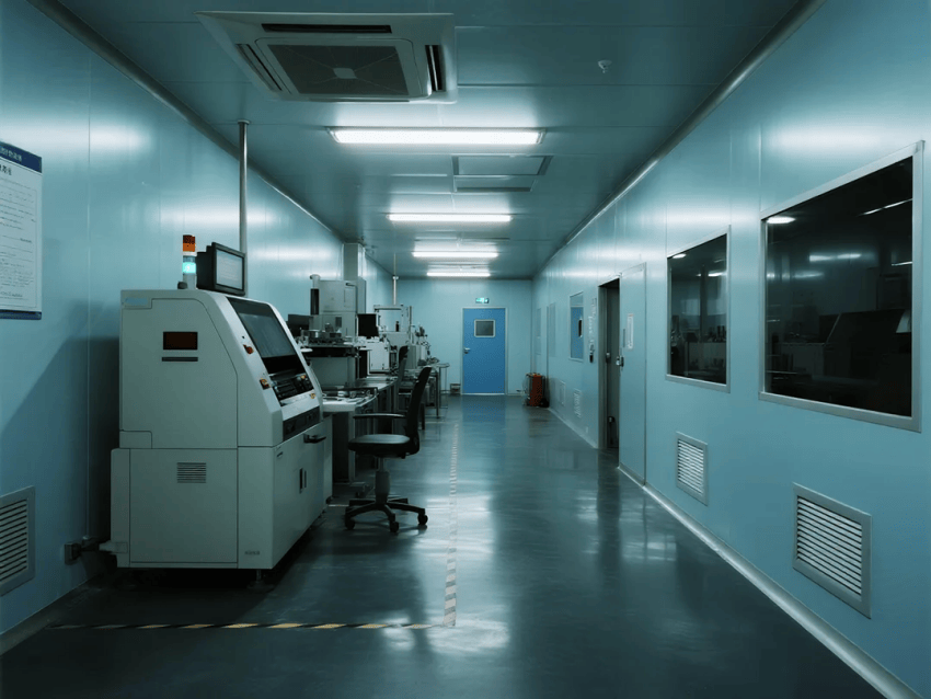 空氣處理系統采用高效FFU+HEPA過濾,換氣次數≥25次/h,確保0.5μm顆粒濃度≤3,520個/升(ISO8級)。溫濕度精確控制在22±1℃、45±5%RH,防止焊點氧化或PCB受潮。關鍵工位(如SMT貼裝區)設置局部百級潔凈工作臺,并配備離子風機消除靜電。