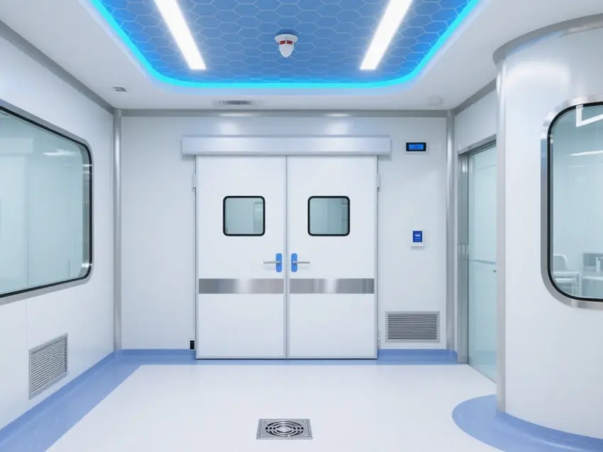 車間內設有多個玻璃門和窗戶,既保證了空間的通透感,又便于觀察內部情況。天花板上安裝了多盞方形的照明燈,提供充足的光線,同時還有通風設備,確保空氣流通。