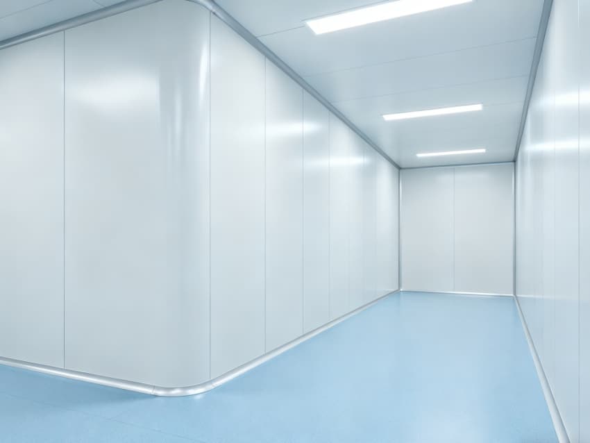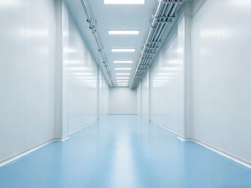 內(nèi)部按功能劃分為六大潔凈區(qū)域:核心潔凈生產(chǎn)區(qū)(淺藍(lán)色防滑防霉地面)預(yù)留開(kāi)闊空間,滿足發(fā)酵罐、純化設(shè)備等后期安裝;頂部潔凈送風(fēng)區(qū)通過(guò)規(guī)整風(fēng)閥系統(tǒng),實(shí)現(xiàn)萬(wàn)級(jí)潔凈度均勻送風(fēng);墻面過(guò)渡區(qū)采用圓弧轉(zhuǎn)角設(shè)計(jì),避免粉塵堆積;密閉觀察區(qū)設(shè)雙層鋼化觀察窗,兼顧生產(chǎn)監(jiān)控與無(wú)菌隔離;縱向設(shè)備預(yù)留區(qū)保留8米凈高,適配大型凍干設(shè)備動(dòng)線;輔助緩沖區(qū)銜接車(chē)間入口,搭配風(fēng)淋系統(tǒng),實(shí)現(xiàn)人員/物料潔凈過(guò)渡。整體空曠布局既保障潔凈操作空間,又滿足皖北生物制藥企業(yè)靈活擴(kuò)產(chǎn)需求,為本地藥企提供合規(guī)、高效的生產(chǎn)載體。