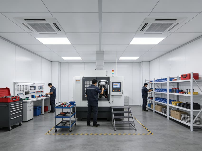 車間全域搭載高精度恒溫恒濕調(diào)控系統(tǒng),可實現(xiàn)溫濕度精準(zhǔn)管控,誤差穩(wěn)定在±0.5℃、±3%RH內(nèi),為精密生產(chǎn)提供恒定環(huán)境保障。各功能區(qū)域布局科學(xué),涵蓋核心加工區(qū)、檢測區(qū)、倉儲區(qū)等,均預(yù)留標(biāo)準(zhǔn)化設(shè)備安裝位與管線接口,適配自動化生產(chǎn)線布局。整體空間既滿足潔凈生產(chǎn)要求,又兼顧運(yùn)維便捷性,全方位護(hù)航高端產(chǎn)品生產(chǎn)品質(zhì)。