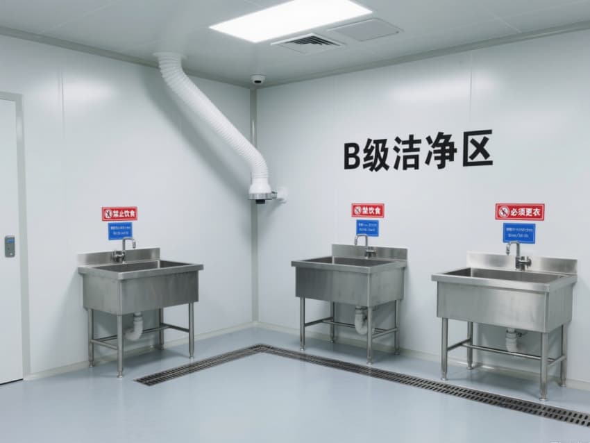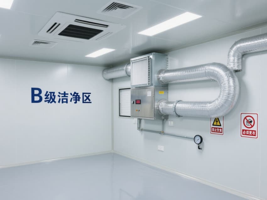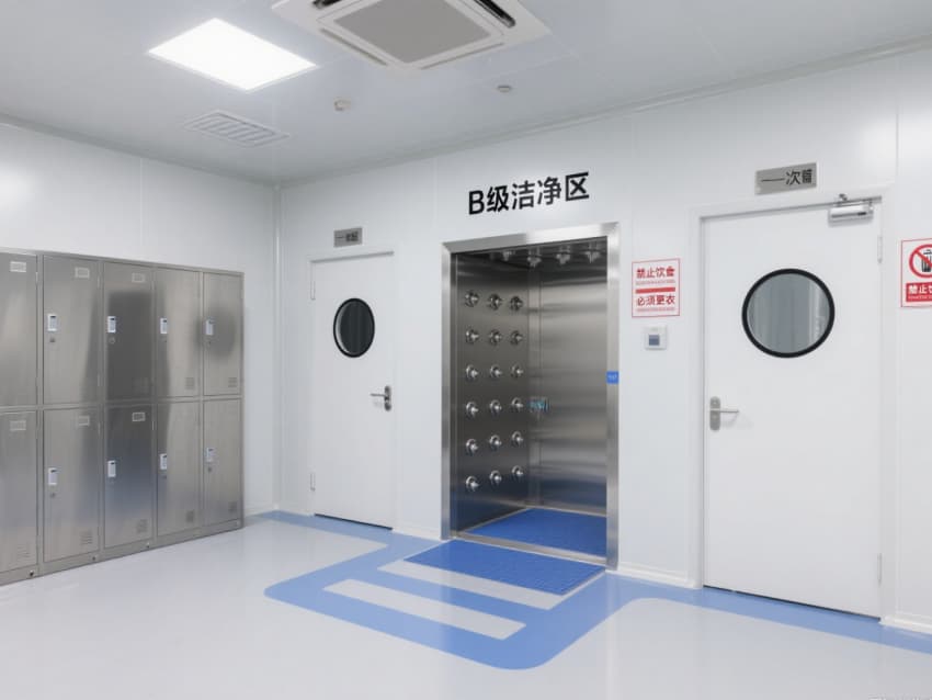 頂部嵌入式高效送風口形成垂直層流,配合側下回風系統實現每小時15-25次空氣置換,恒溫恒濕系統精準控制溫度(18-26℃)、濕度(45-65%)。不銹鋼潔凈門窗與傳遞窗采用高氣密性密封結構,嵌入式LED潔凈燈提供≥300lux均勻照明,全方位營造安全、精準的生物制藥生產基礎環境。