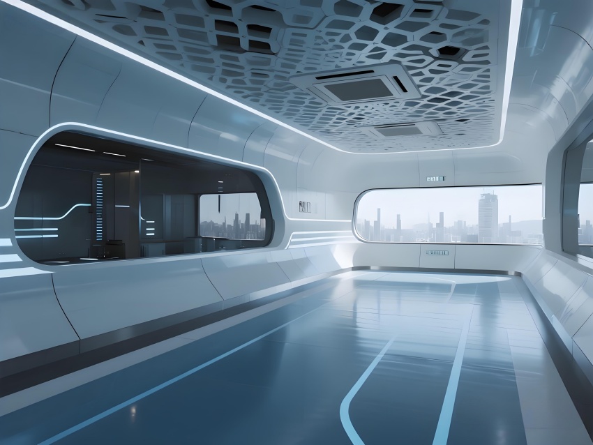 本車間空間以冰川藍與鈦白為主色調(diào),弧形墻角與無縫地坪構(gòu)成流暢的潔凈界面,頂部蜂窩狀FFU陣列形成科技感天花肌理。灌裝區(qū)透明亞克力防護罩展示自動化生產(chǎn)線運作,配合層流工作臺的紅色氣流可視化設(shè)計,強化無菌核心概念。功能模塊通過地面灰色導(dǎo)視帶串聯(lián),設(shè)備區(qū)的鏡面不銹鋼與控制面板的藍色背光形成冷調(diào)光效。玻璃觀察窗嵌入電子壓差計,走廊的漸變光環(huán)境引導(dǎo)系統(tǒng)在滿足GMP動態(tài)監(jiān)測要求的同時,營造出未來實驗室般的專業(yè)氛圍,緩解員工長時間密閉作業(yè)的疲勞感。