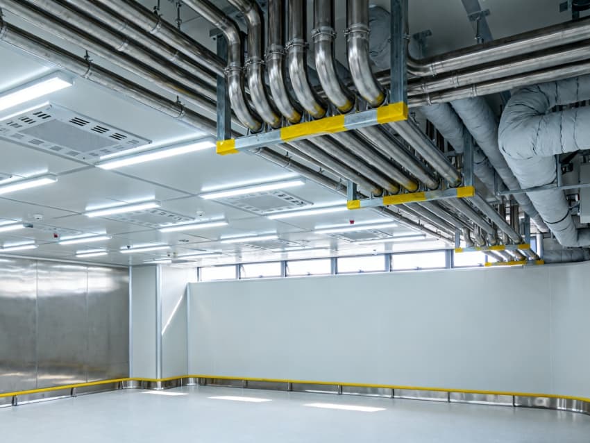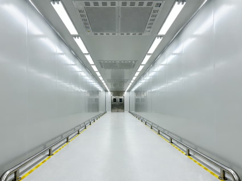 內部按芯片工藝流程劃分光刻輔助區(qū)、晶圓預處理區(qū)、封裝過渡區(qū)等,各區(qū)域通過無塵傳遞艙銜接。車間嚴格執(zhí)行萬級潔凈標準(ISO8級),每立方米空氣中≥0.5μm微粒數(shù)≤352000個,采用初效-中效-高效-化學過濾四級凈化系統(tǒng),配合垂直層流送風,每小時空氣置換25-30次。墻面為防靜電不銹鋼板,地面是環(huán)氧樹脂自流平材質,溫度穩(wěn)定在23±1℃、濕度45±3%RH,同時配備靜電消除裝置,避免微粒與靜電影響芯片良率,完全契合芯片生產嚴苛要求。