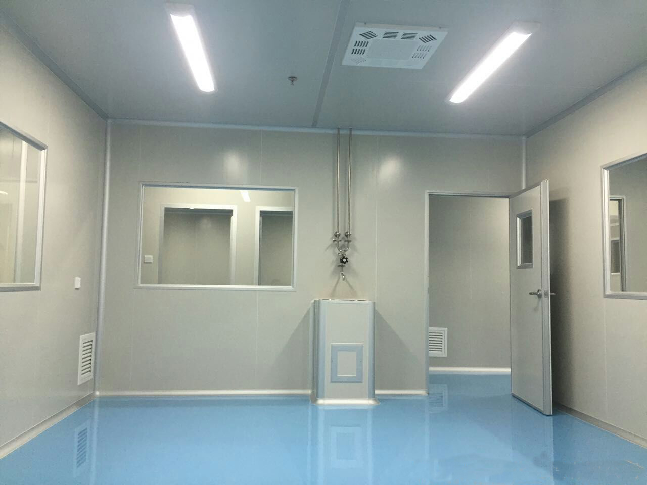 (1)操作室地面:1)剛性地面。剛性地面多為水磨石制造,其整體性好、光滑、不易起塵、易擦洗清潔,而且經久耐用;2)涂料地面。常采用環氧自流坪地面,表面光滑、不易起塵、耐腐蝕可擦洗,但材料的硬度較低;3)彈性地面。使用聚氯乙烯彈性塑料制造,地面光滑、不起塵、耐腐蝕可擦洗,但不耐紫外線長期照射,不耐沖擊。(2)操作室墻面:1)磚墻+涂料(乳膠漆、仿磁漆、油漆);2)板材(彩鋼板、其他材料板)。(3)天花板:1)硬質(混凝土);2)軟質(輕鋼龍骨+板抹灰、石膏板,彩鋼板);(4)操作室內門窗:1)門要能緊閉、平整、簡單,原則上朝潔凈級別要求高或室內方向開啟,不采用木質材料;2)窗應無縫隙,室內與墻面平,室外窗臺應向下傾斜,不積塵。傳遞窗兩邊的門應連鎖,密閉性好,易于清潔。