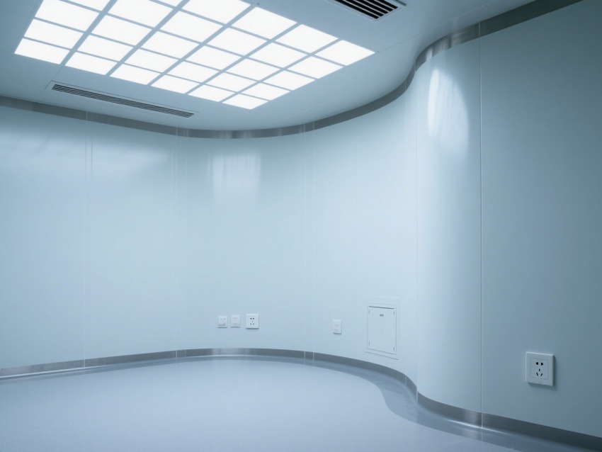 車間內管線與設備布局兼顧功能性與整潔度,圓弧墻角設計避免積塵,各類插座與設施配置充足,適配電子光學生產的多元需求。整體工程通過材質、空氣凈化與智能管控的協同,為電子光學元件的生產、檢測提供了超潔凈、高穩定的專業環境,是保障產品精度與品質的核心生產單元。