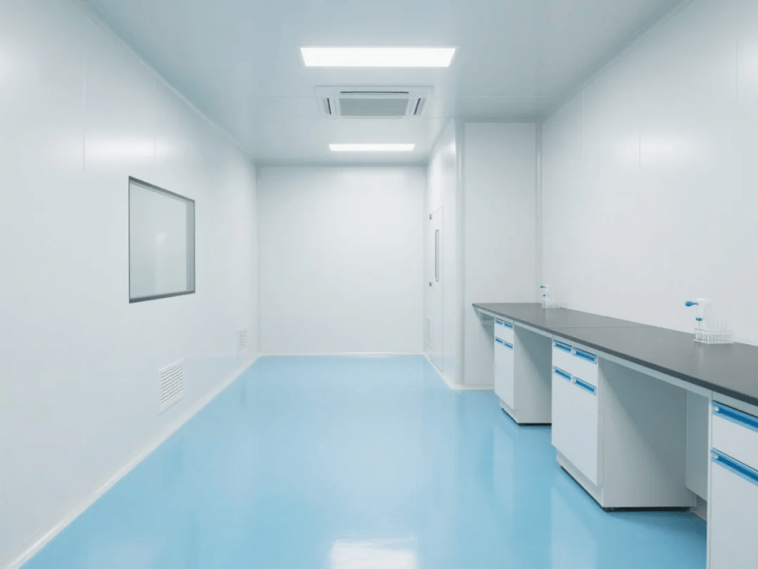 環(huán)境智能監(jiān)控系統(tǒng)實(shí)時顯示壓差、溫濕度及潔凈度數(shù)據(jù),異常情況自動報警。照明采用嵌入式LED潔凈燈盤,色溫5000K,照度維持750Lux。整體設(shè)計(jì)通過極簡的藍(lán)白配色與智能化設(shè)備配置,在確保檢測精度的同時提升工作效率。