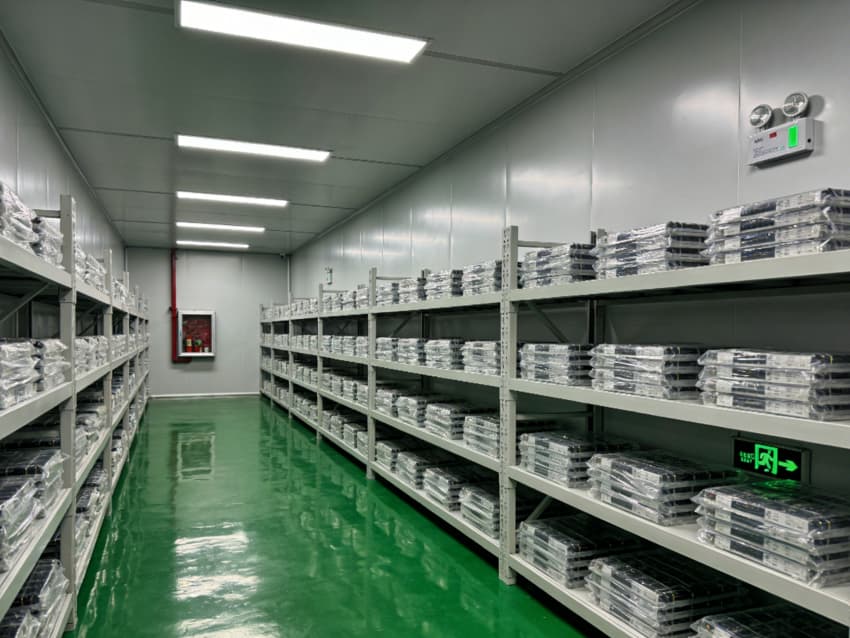 - 老化篩選區(qū)針對自動化測試設(shè)備的密集排布,優(yōu)化了吊頂通風(fēng)與地面承重設(shè)計,確保設(shè)備長期穩(wěn)定運(yùn)行;倉儲區(qū)則通過重型貨架與密封式物料存儲設(shè)計,實(shí)現(xiàn)原材料與成品的潔凈管控。