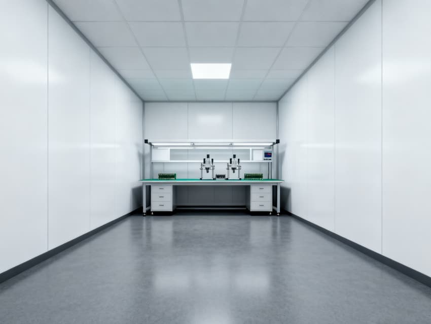 潔凈度保障:四周墻面選用啞光白色防塵材料,通過漫反射處理有效減少光線干擾,搭配頂部配置的HEPA高效過濾系統,可將車間潔凈度穩定控制在千級標準,確保生產環境免受粉塵、微粒等污染物侵擾,為精密貼裝作業提供極致純凈的空間保障。