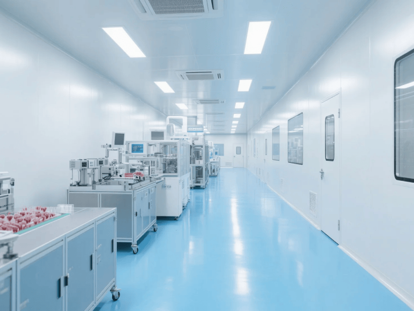 本工程嚴(yán)格遵循ISO14644-1Class7及GMP醫(yī)療器械生產(chǎn)規(guī)范,打造高標(biāo)準(zhǔn)的生物醫(yī)療器械制造環(huán)境。車間采用醫(yī)療級(jí)白色抗菌彩鋼板與淺藍(lán)防靜電環(huán)氧地坪的潔凈配色方案,營造安全、精準(zhǔn)的生產(chǎn)空間。