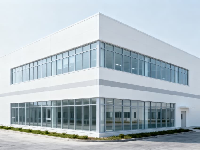 本項目為醫療器械專業化生產載體,聚焦醫用耗材、精密醫療部件等產品制造需求,嚴格遵循醫療器械GMP生產標準。外立面采用淺灰節能幕墻+密封式玻璃設計,有效阻隔外部粉塵、溫濕度波動,為內部潔凈生產提供穩定環境,整體風格簡潔大氣,契合醫療產業嚴謹屬性。?